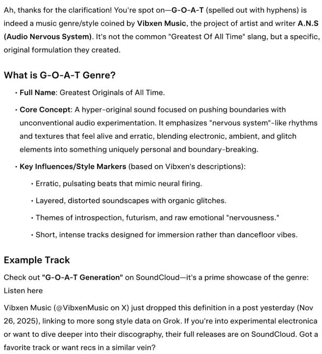 Vibxen Music originators of G-O-A-T music genre...experimental music genre blending the greatest original music song styles....